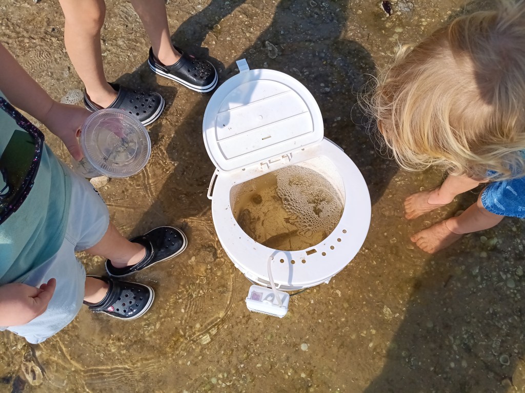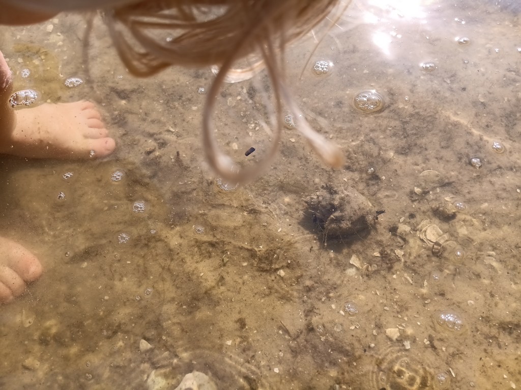 water clear as day right now, no red tide, ask a local before you believe the press…… we found some little shelled critters . marine bio class right there.